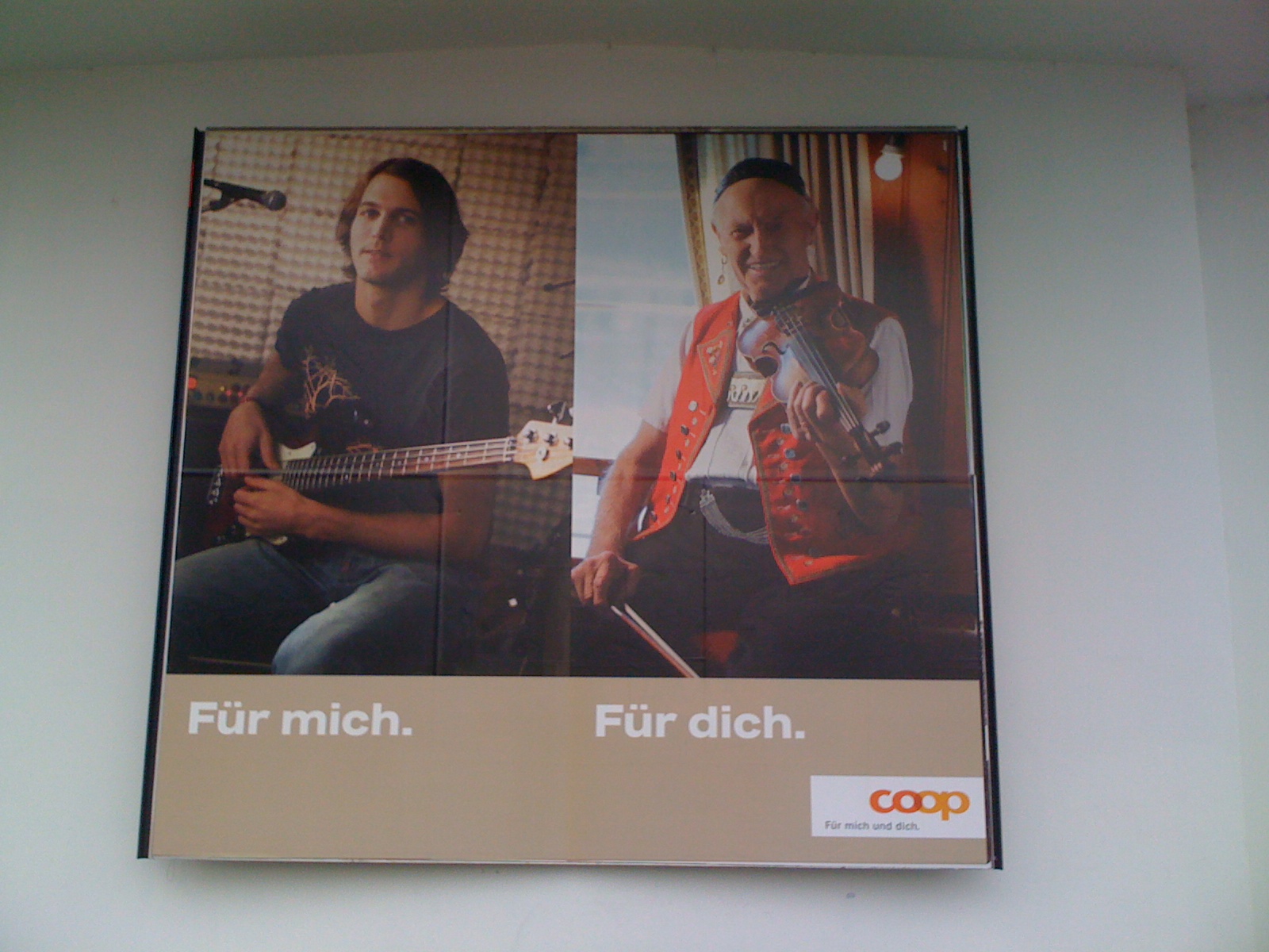 This ad does not have deeper implications for me (unlike this one), but it did make me wonder why the two guys can't get together and have a good jam. It plays on — even appeals to — an excessive rigidity that many musicians unfortunately have ("I don't play country" or whatever style) while simultaneously trying to overcome it ("we don't jam, but we both shop at Coop").