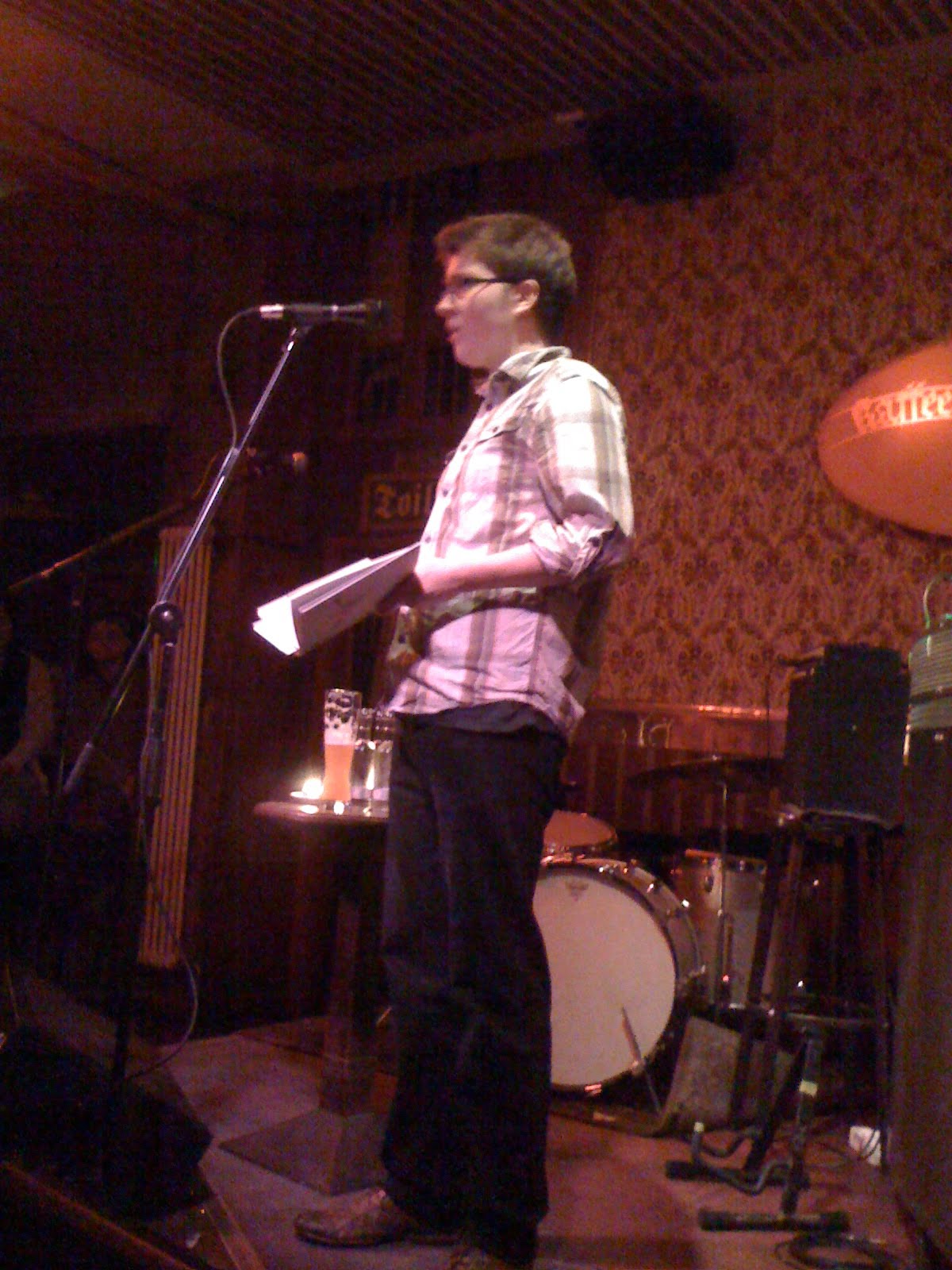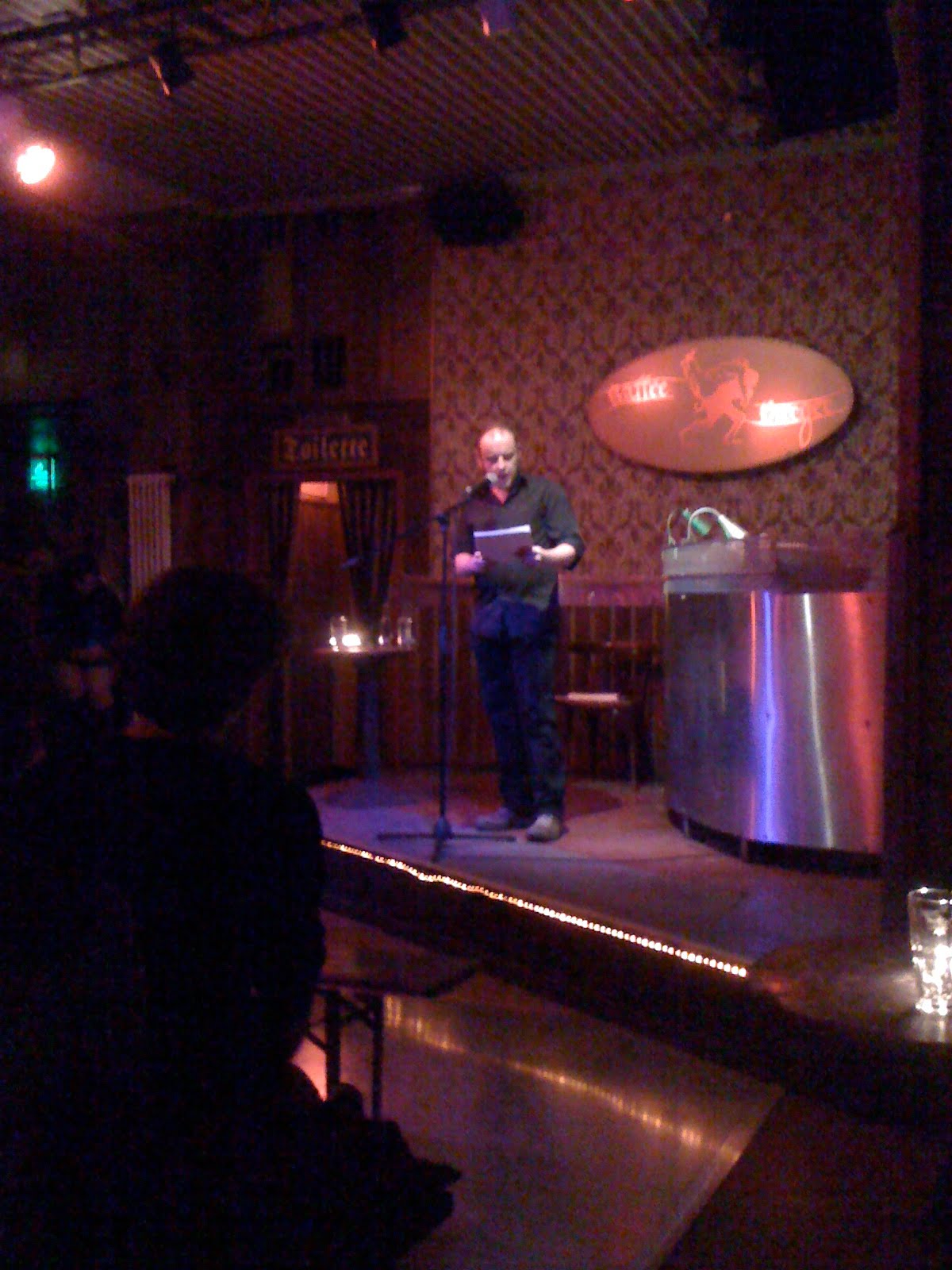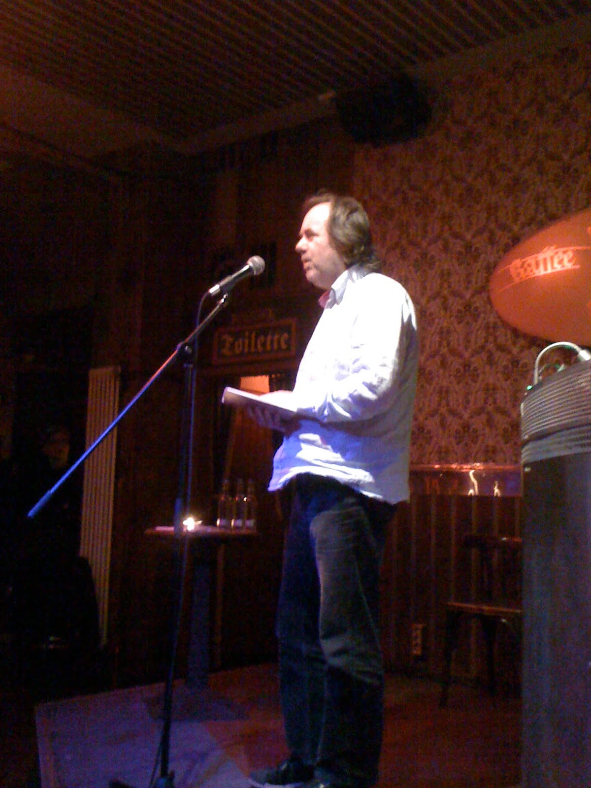 This is no longer news; instead, it's history. That's Alistair Noon, who did the first reading at the Berlin Poetry Hearings 2009, back on November 20.