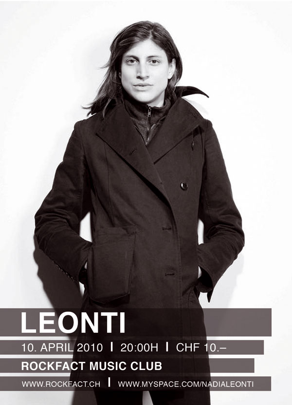 Leonti will be playing at Rockfact in Münchenstein on Saturday, April 10. I keep promoting Nadia's shows because she keeps asking me to write more lyrics for her. There will be at least a couple world premieres on Saturday, as far as I know. Leonti at Rockfact, April 10, 2010
