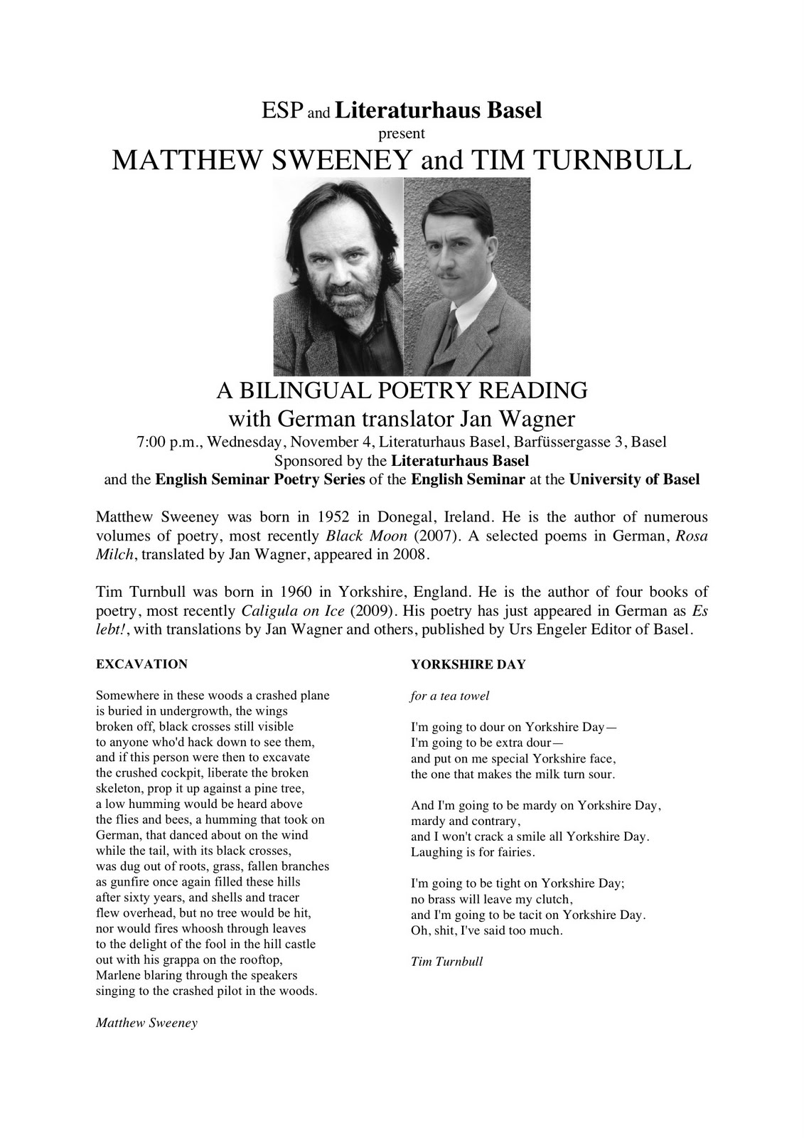 [Click on the image to get a larger version.] Matthew Sweeney, Tim Turnbull, and Jan Wagner in Basel, November 4, 2009