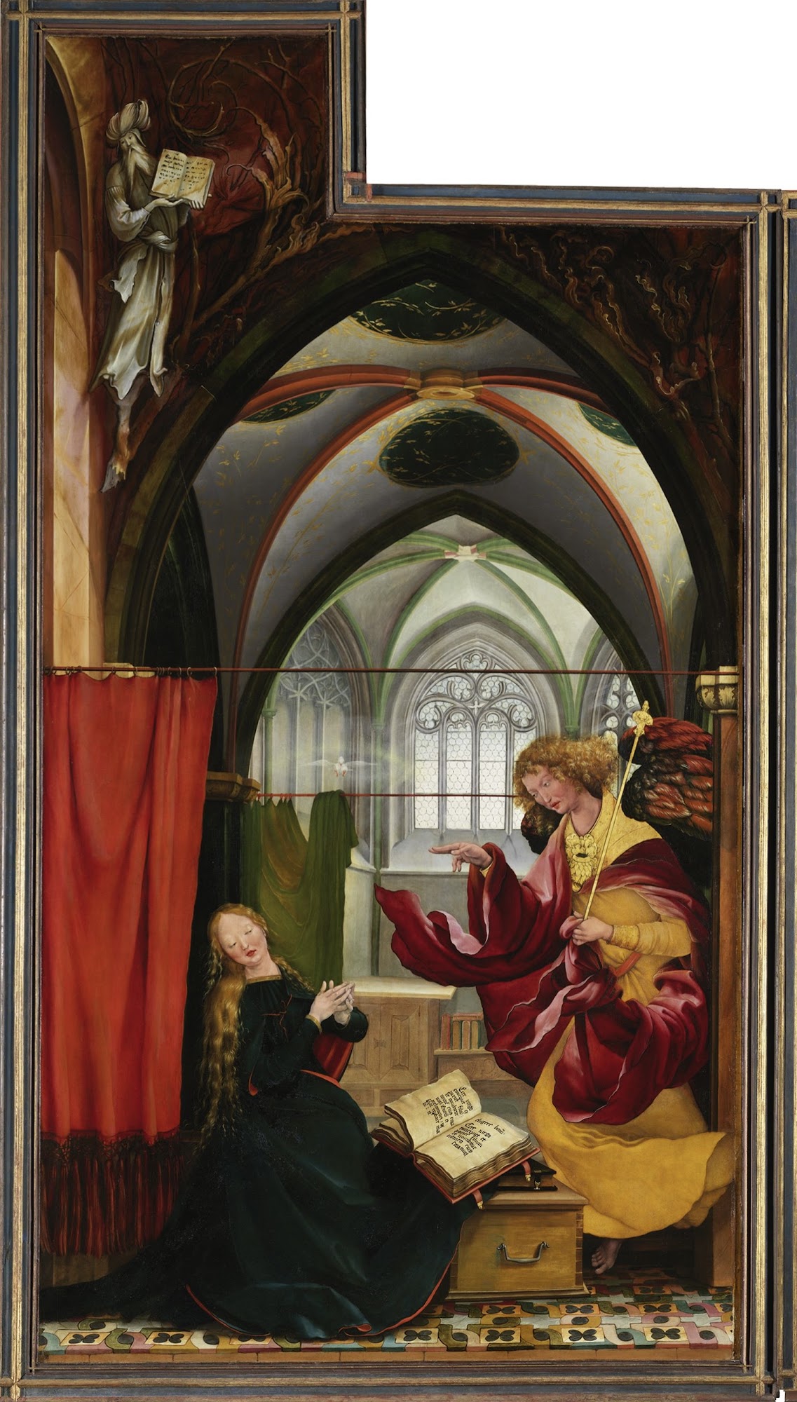 Today, I went to the Musee Unterlinden in Colmar to revisit Matthias Grünewald's extraordinary Isenheim Altar from the 1510s. The museum now has a newer section that includes work from the 20th and 21st centuries. After I had spent an extra-long time contemplating Grünewald's "Annunciation", I was struck by a 20th-century painting that I immediately recognized as another "Annunciation". The style was familiar, and it turned out to be a 1950 painting by Otto Dix, whose work from the 1920s I have often seen before. And the museum also had Dix's 1946 "Crucifixion", another echo of Grünewald. As I learned, Dix was a POW in a camp near Colmar in 1945-1946. (Andrew Shields, #111Words, 12 March 2025)