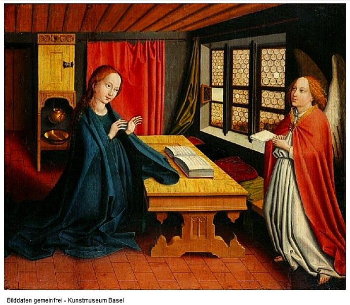 When he was on his way down to carry the message to her, he felt confident that he could deliver it without any difficulty, but after he knocked and heard her saying that he could come in, the soft tone of her voice made him hesitant, and when he saw her as he stepped in, her beautiful face framed by her hair pulled back tight behind her ears left him speechless. As she welcomed him, he did not know what to do with his hands and stepped back and forth from one foot to the other. Only when his wings stopped fluttering could he deliver his annunciation to the young woman. (Andrew Shields, #111words, 24 August 2023)
