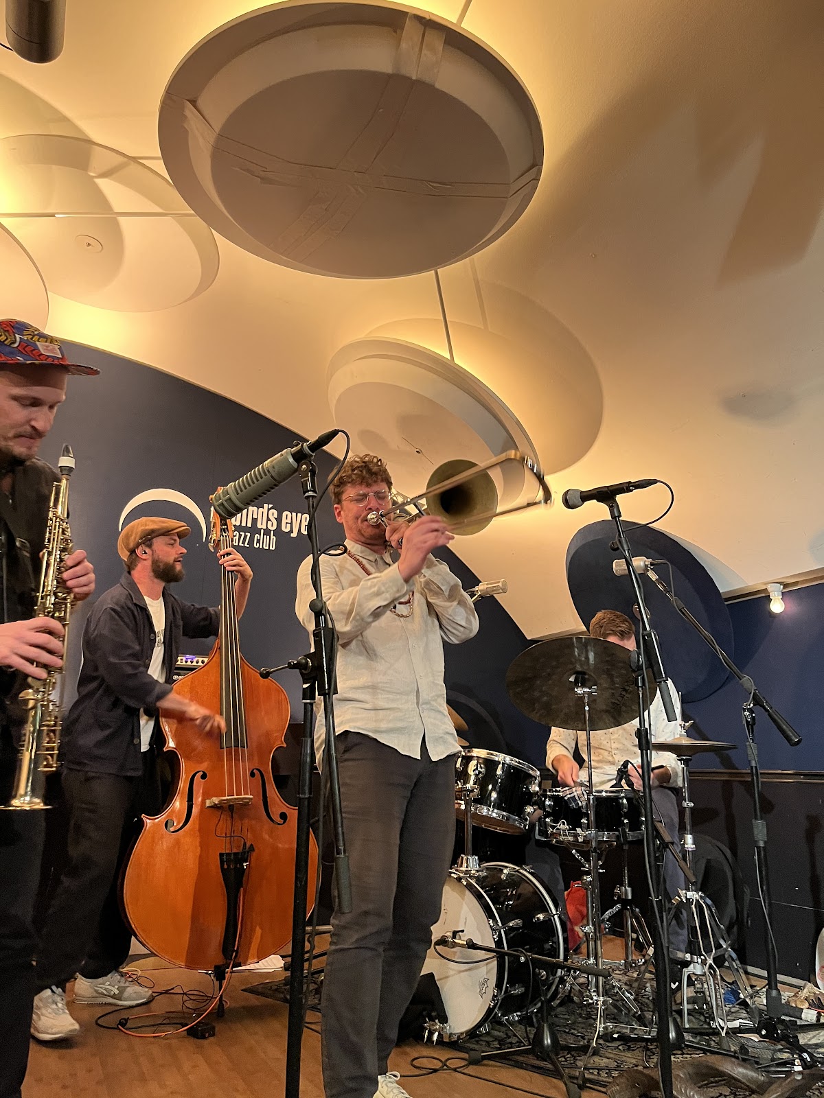 As I wrote two years ago, inspired by Ted Gioia's "Music to Raise the Dead", I am on a quest for musical transformation. And as I wrote last May, following Vinnie Sperrazza's "Chronicles" on Substack, the interplay of musicians in jazz (the primary idiom of my quest) offers a model of community to the world. Last night's wonderful concert at the Bird's Eye in Basel by Skyjack (with Swiss musicians Marc Stucki, saxophones, and Andreas Tschopp, trombone, and South African musicians Kyle Shepherd, piano, Shane Cooper, bass, and Jonno Sweetman, drums) brought those points together: when the interplay expands to include band and audience, the musical transformation becomes social and communal. (Andrew Shields, #111Words, 16 March 2025)